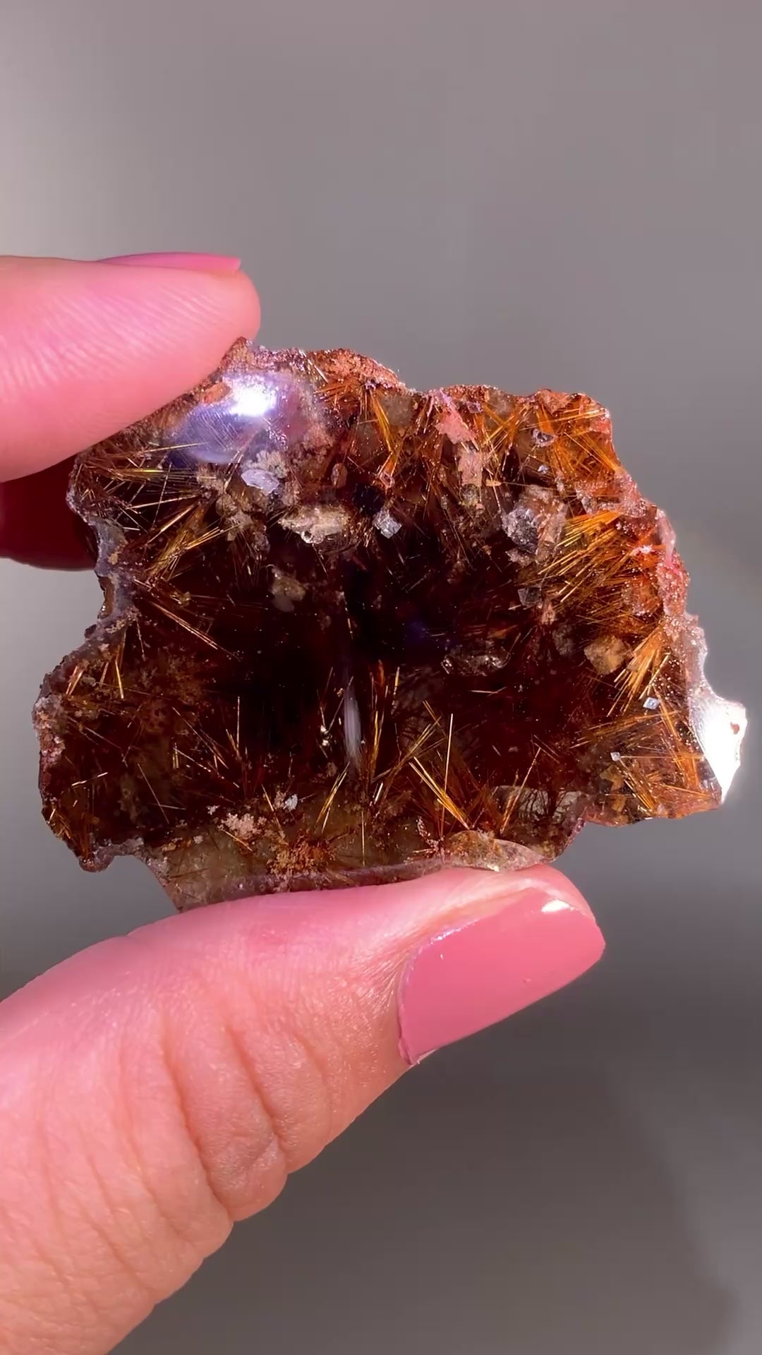 A rare and unique polished Smoky Quartz featuring a stunning Star Rutile with Quartz-in-Quartz manifestation. Inside, you’ll find several manifestation points, adding to its intrigue. The intricate internal formations and radiant rutile patterns evoke the mysterious beauty of a hidden cave—making this a prized collector’s specimen.