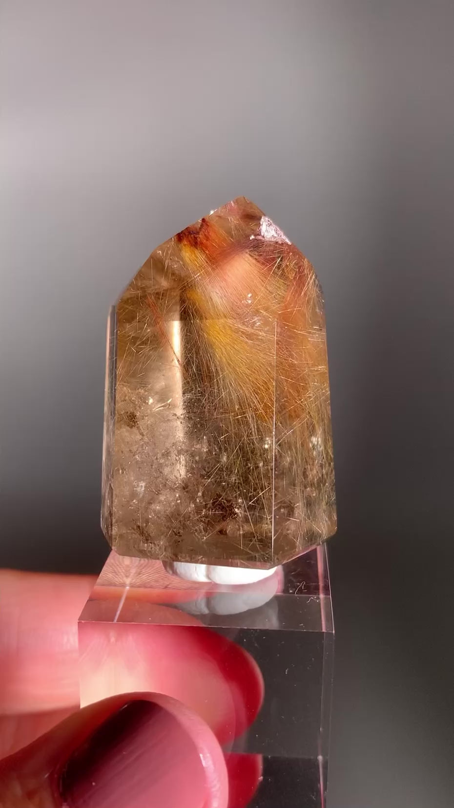 Red Copper And Gold Rutile Quartz Polished Tower