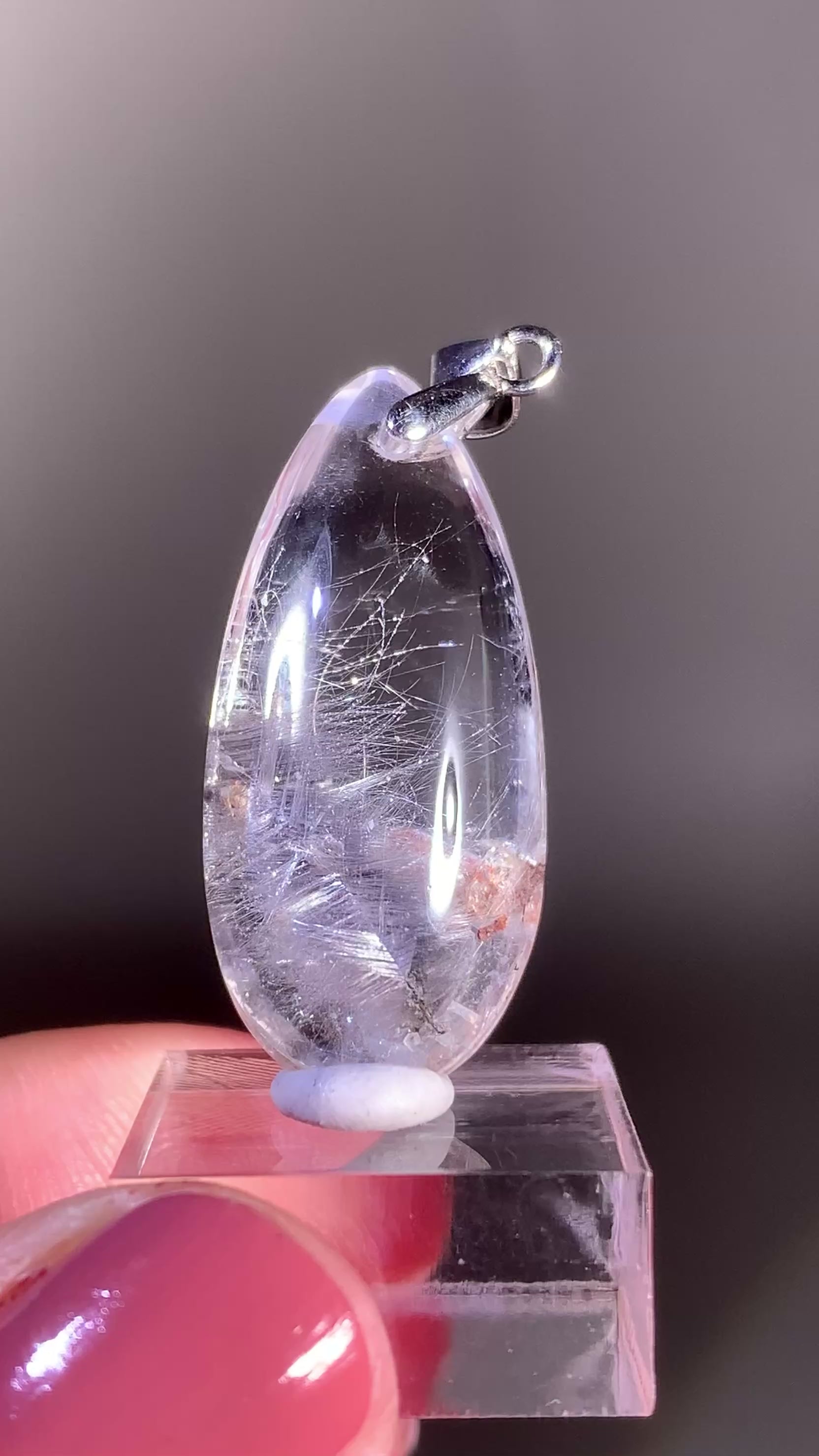 Silver Brookite Rutile with Manifestations – Polished Teardrop Clear Quartz Pendant from Brazil