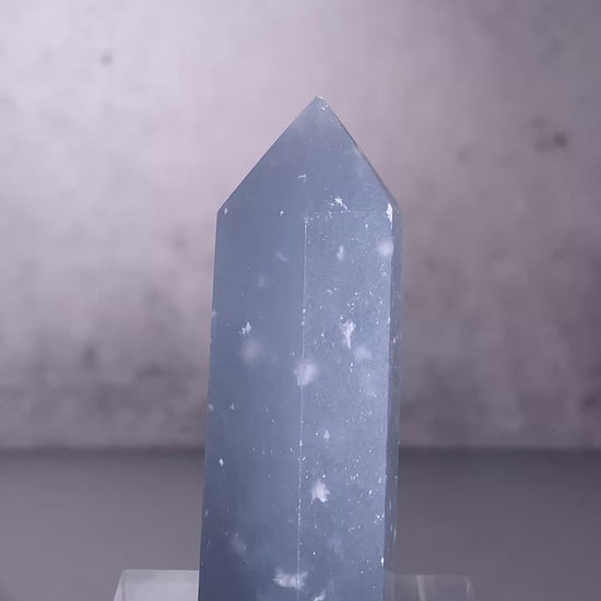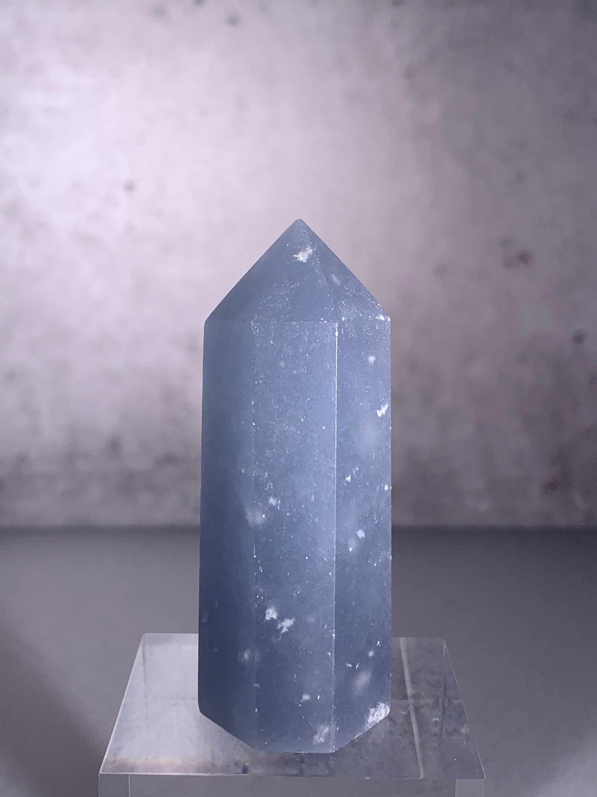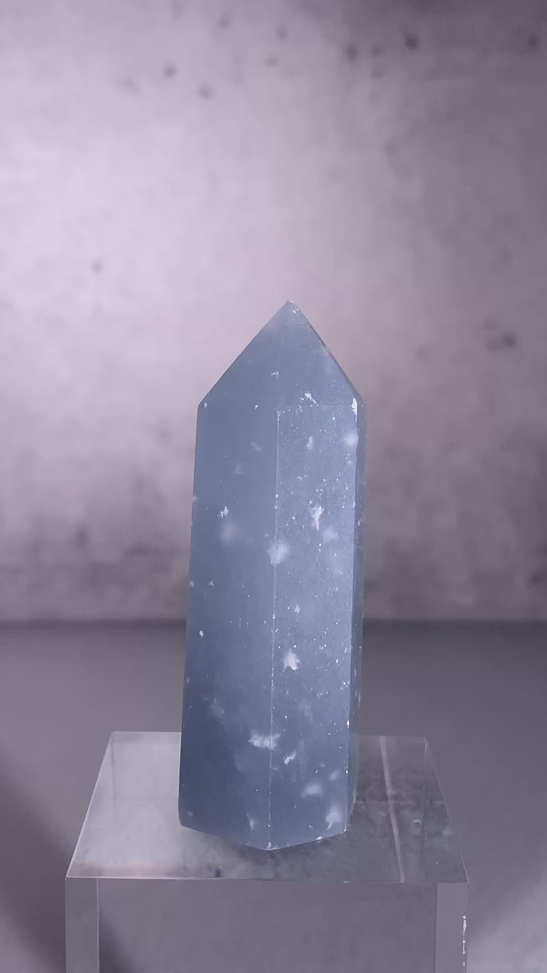 A calming pale blue crystal, adorned with delicate white “snowflake” inclusions. These natural patterns are formed either from remnants of the host rock or from areas where Angelite has partially rehydrated into white gypsum or selenite. Known for its peaceful, angelic energy and gentle communication, this stone makes a beautiful companion for any healing or spiritual space.