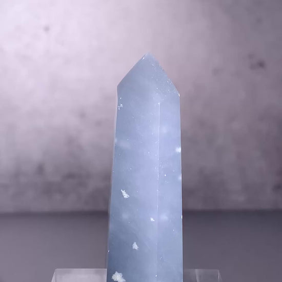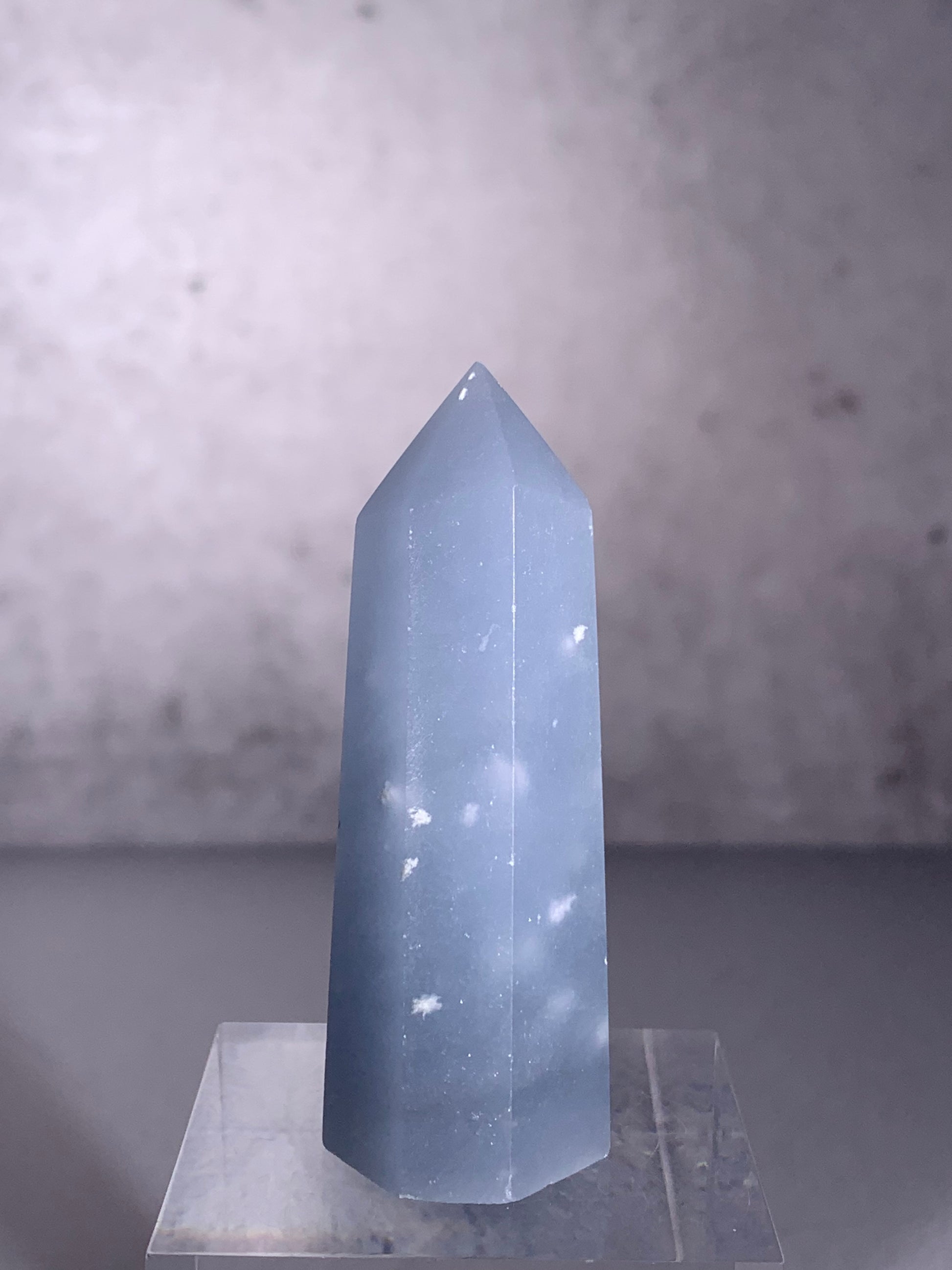 A calming pale blue crystal, adorned with delicate white “snowflake” inclusions. These natural patterns are formed either from remnants of the host rock or from areas where Angelite has partially rehydrated into white gypsum or selenite. Known for its peaceful, angelic energy and gentle communication, this stone makes a beautiful companion for any healing or spiritual space.