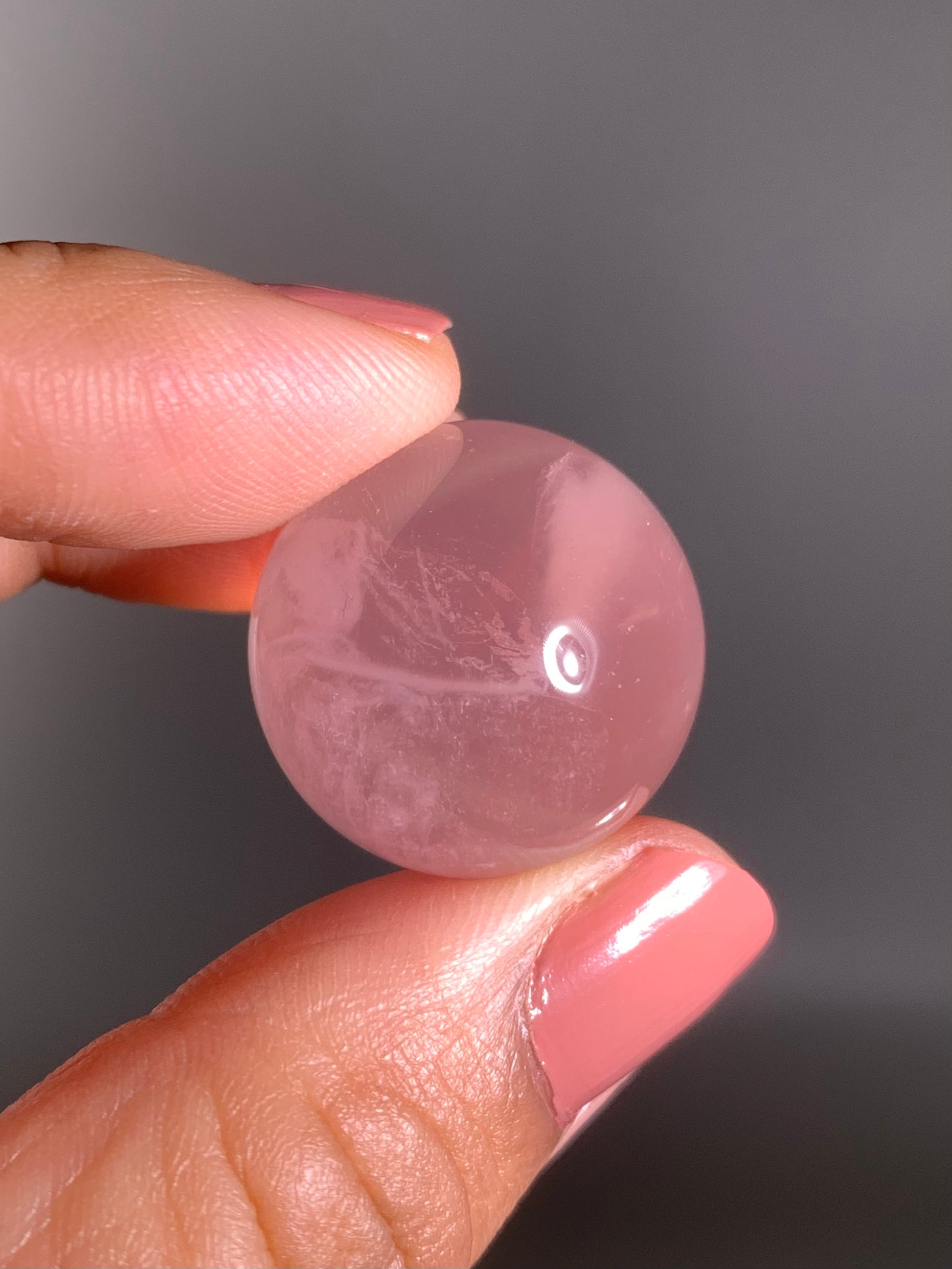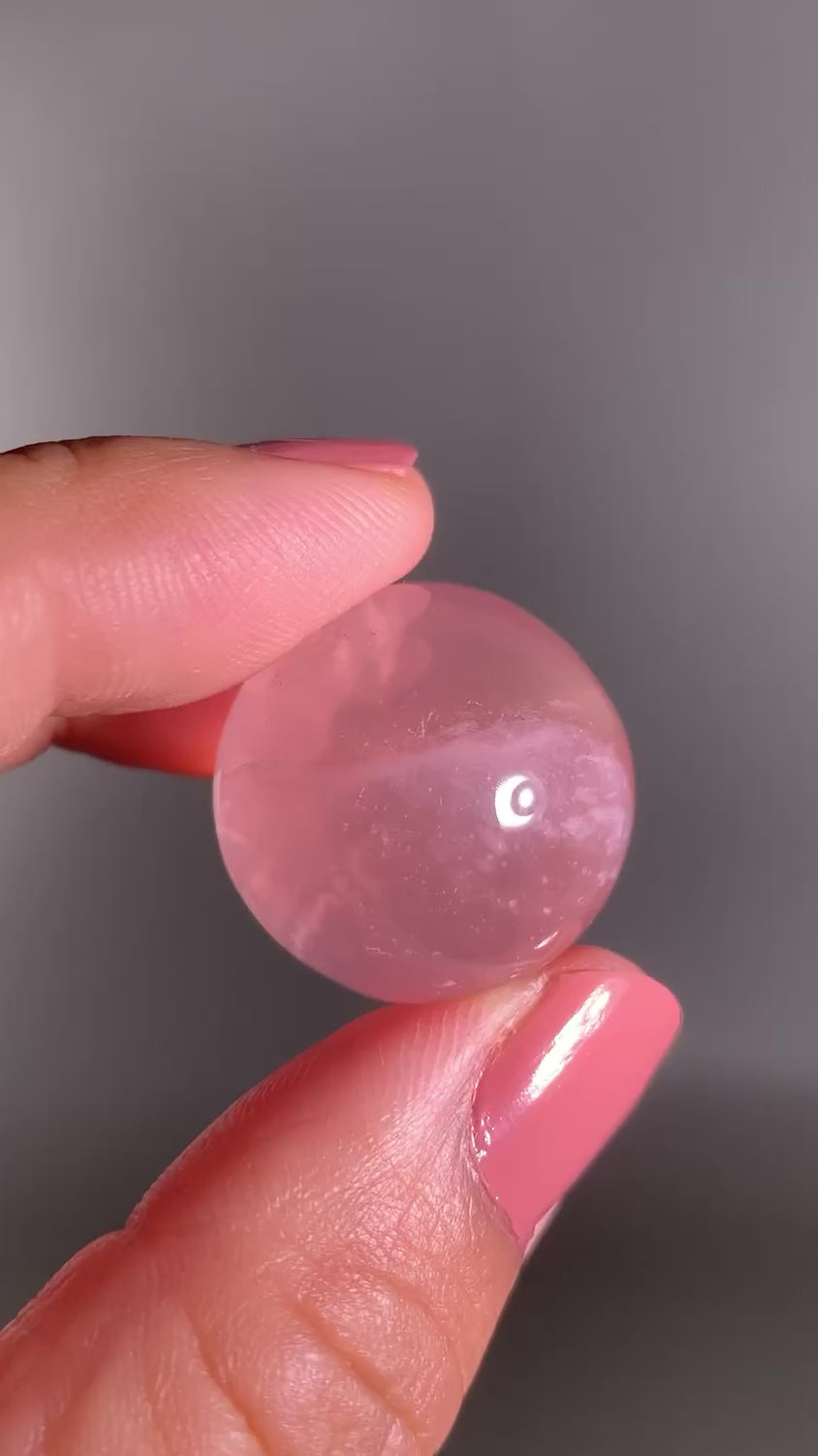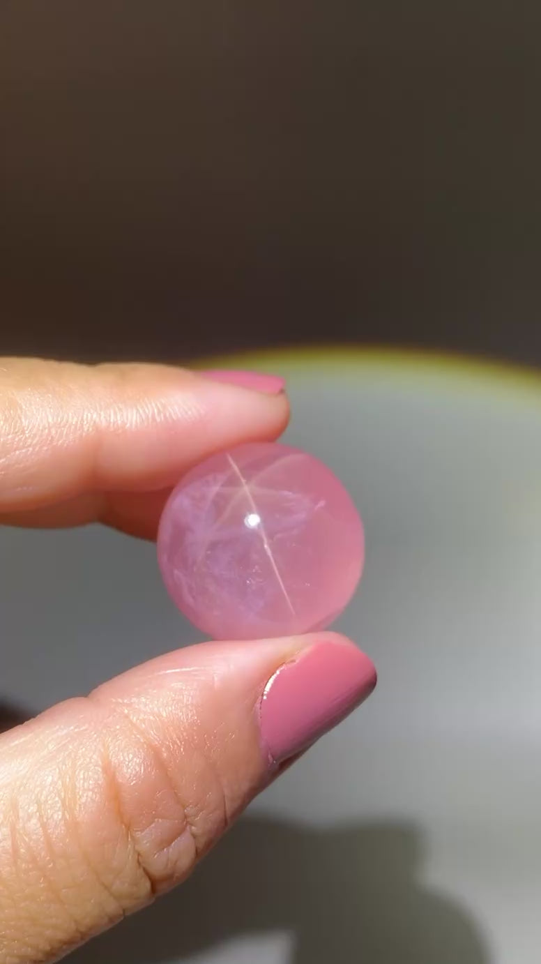 This unique rose quartz sphere features dreamy inner landscapes and natural white inclusions that resemble snowflakes or tiny gardens. It also displays a rare asterism—a star-like light effect visible under direct light. Calming, nurturing, and full of soft, loving energy, each piece is a radiant work of natural art that embodies love, clarity, and inner peace.