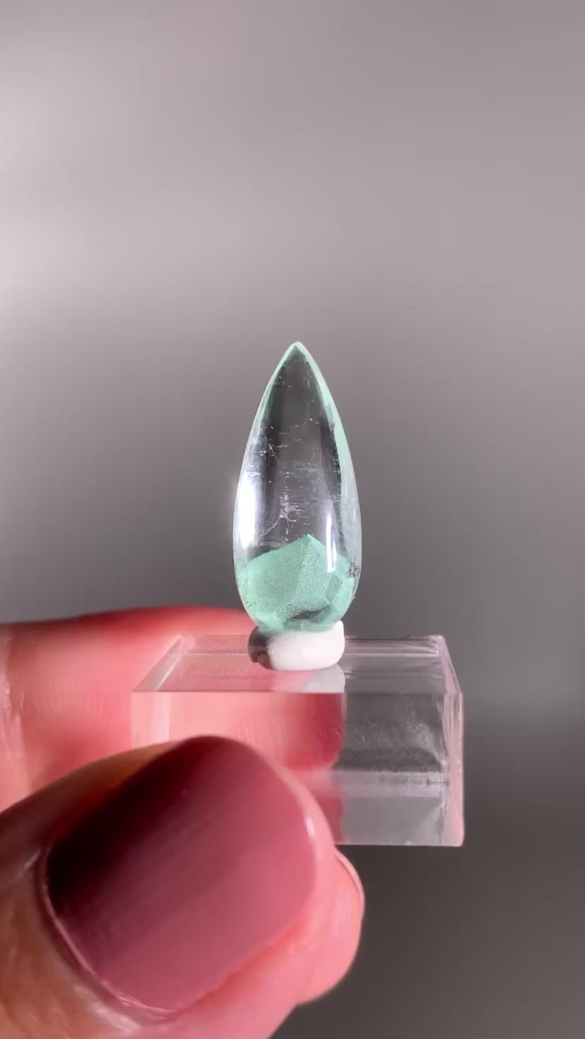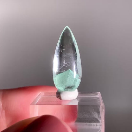 Note: A beautifully teardrop-polished phantom quartz featuring a rare Tiffany Blue hue from Madagascar—perfect for setting into a unique pendant.
