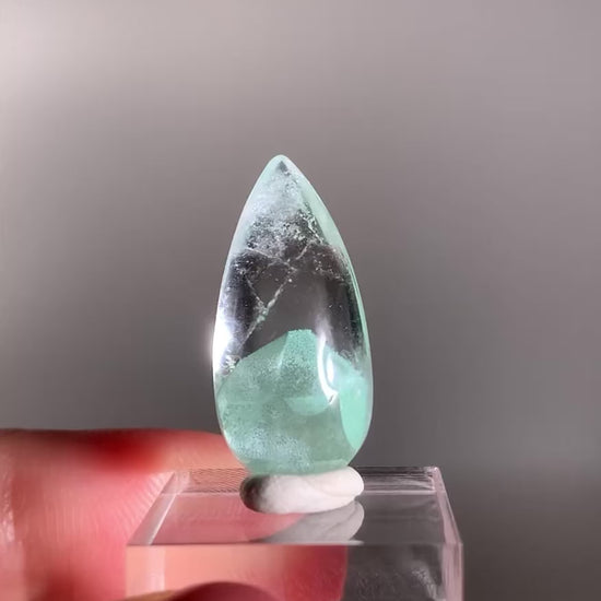 Teardrop-Polished Phantom Quartz with Rare Tiffany Blue Color from Madagascar
