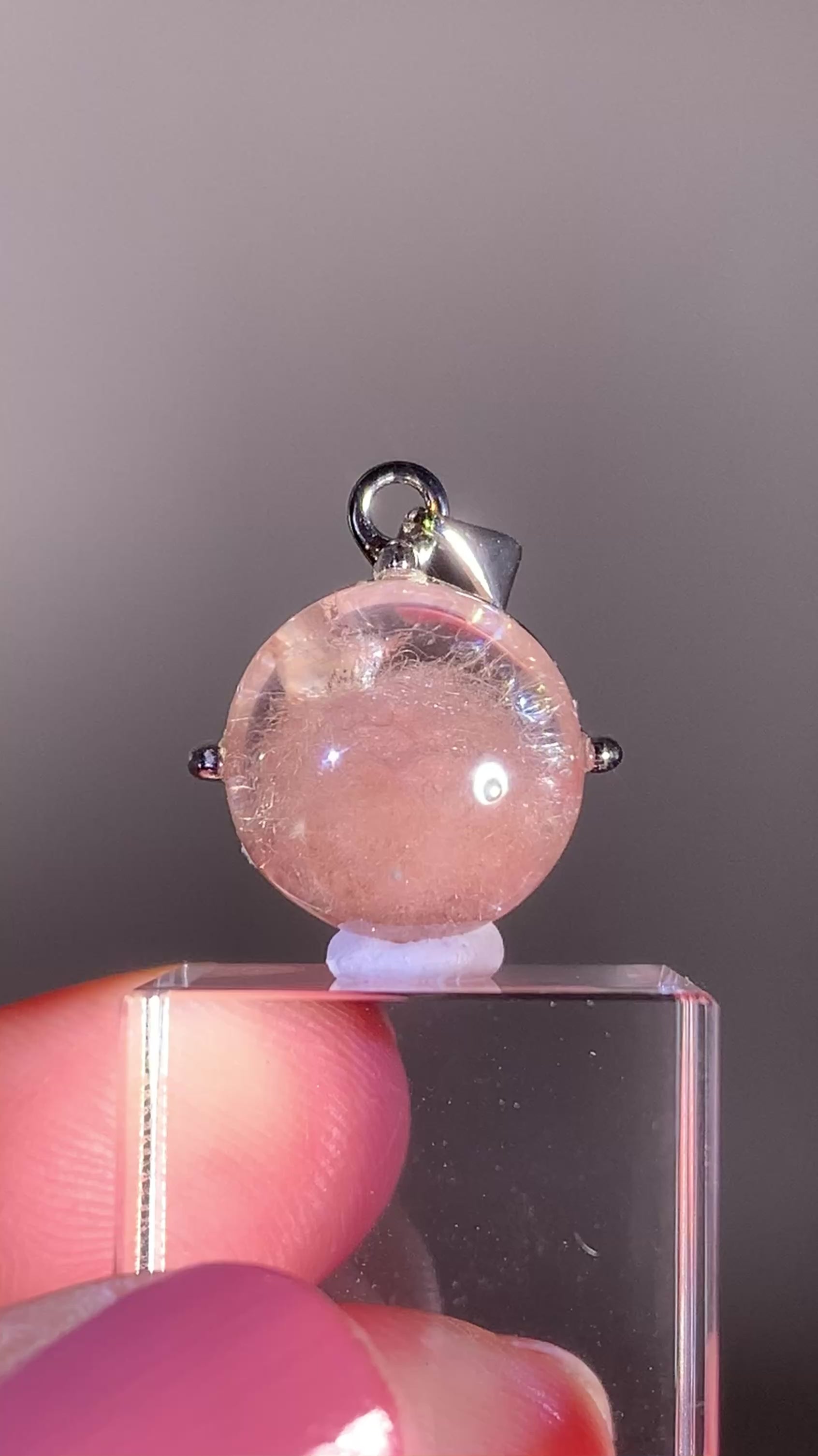 Top Quality Brazilian Pink Amphibole Quartz Pendant set in S925 sterling silver. This natural crystal from Brazil features soft pink tones and unique inclusions, making each piece one of a kind. Durable S925 silver hardware ensures lasting shine and everyday elegance.