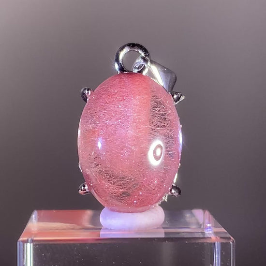 Top Quality Brazilian Pink Amphibole Quartz Pendant in S925 Sterling Silver