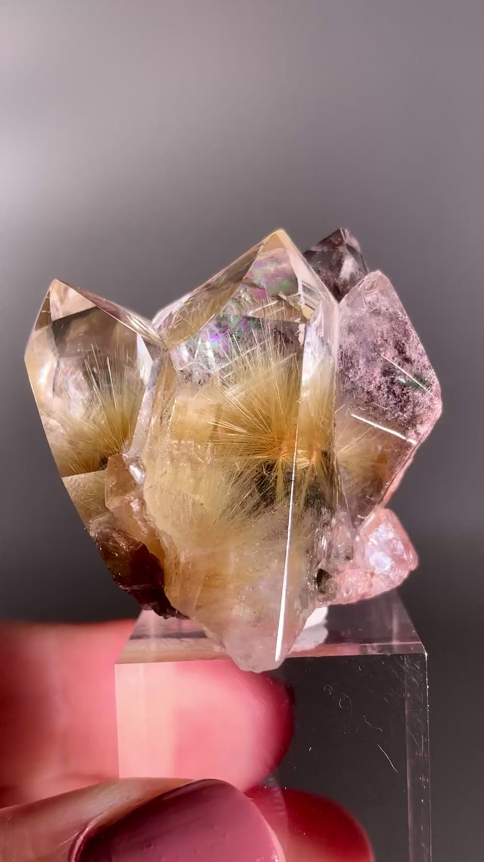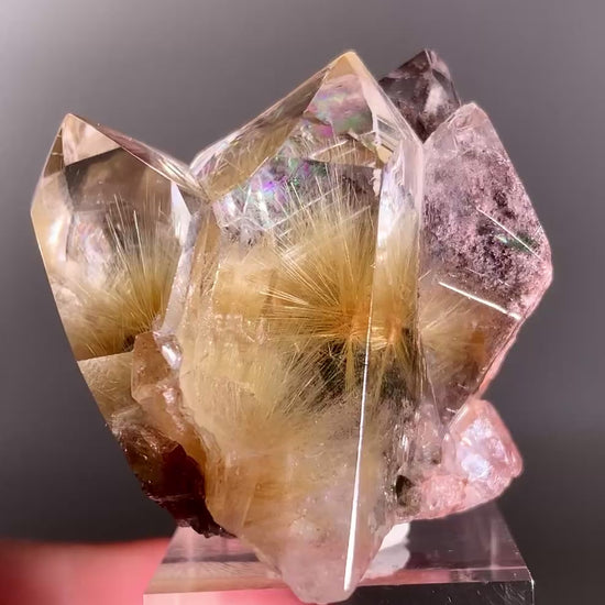 This top-quality semi-polished Gold Star Rutile with Purple Garden Quartz is truly one of a kind. The golden rutile radiates like starlight against the dreamy purple garden—an extraordinary piece for serious collectors.